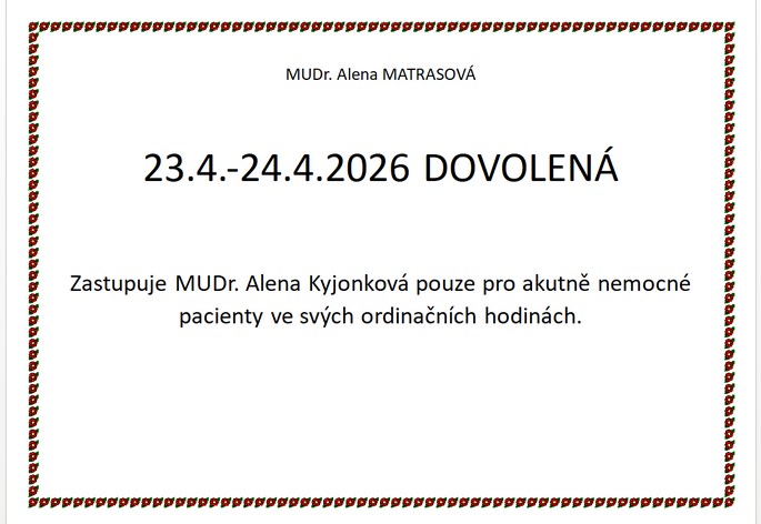 Od 1.6.2025 pracuje každý pátek v naší ordinaci MUDr. Radka Cihlářová.